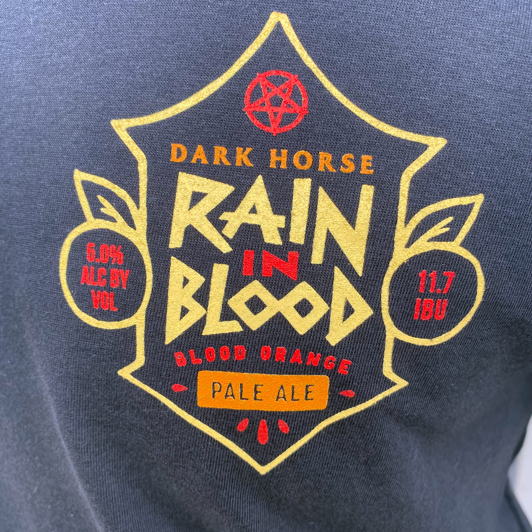 The Dark Horse Rain In Blood black t-shirt. Super soft. There’s nothing better than a cold summer rain. You’ll wear it well. You’ll wear it out.
